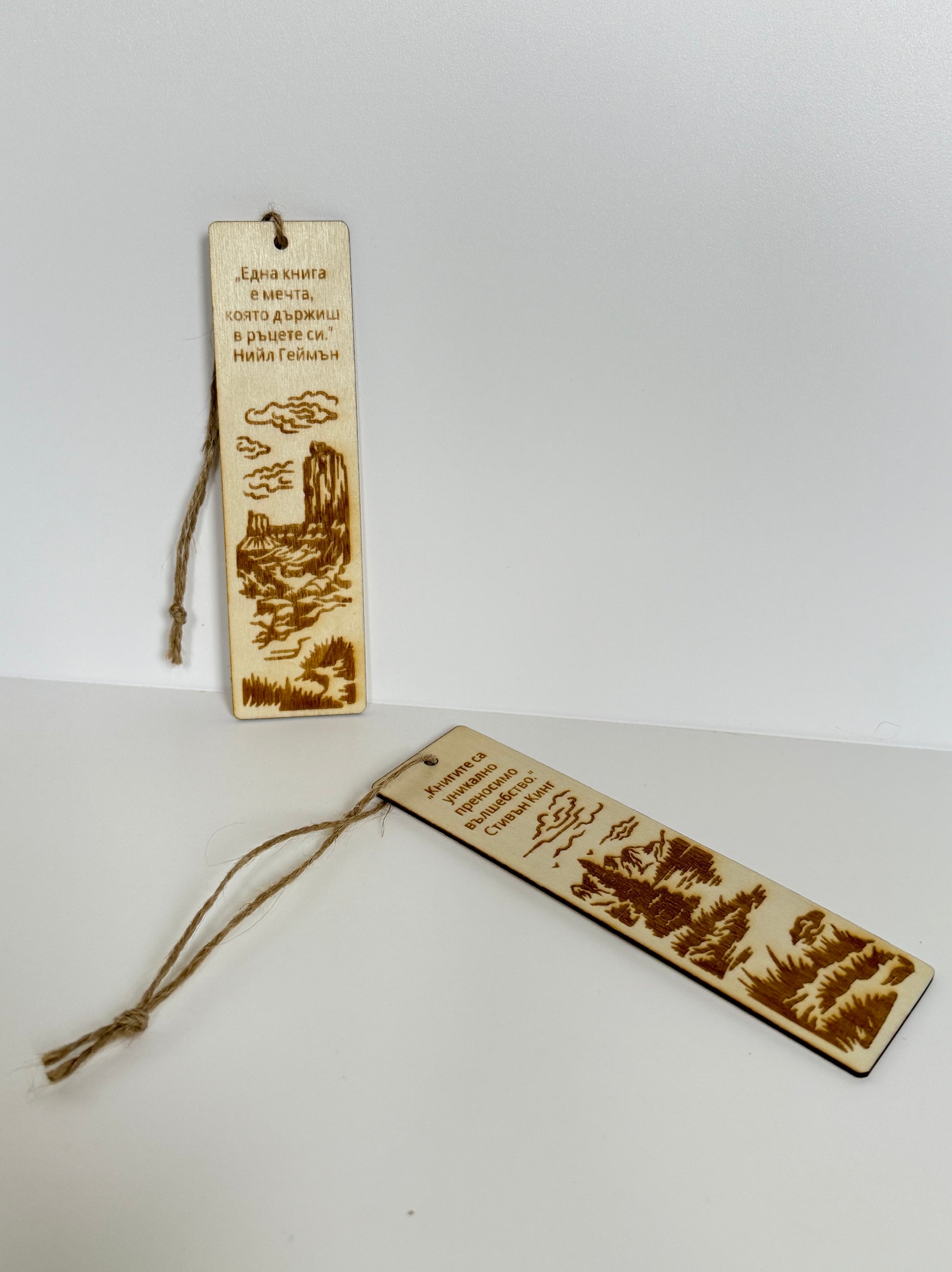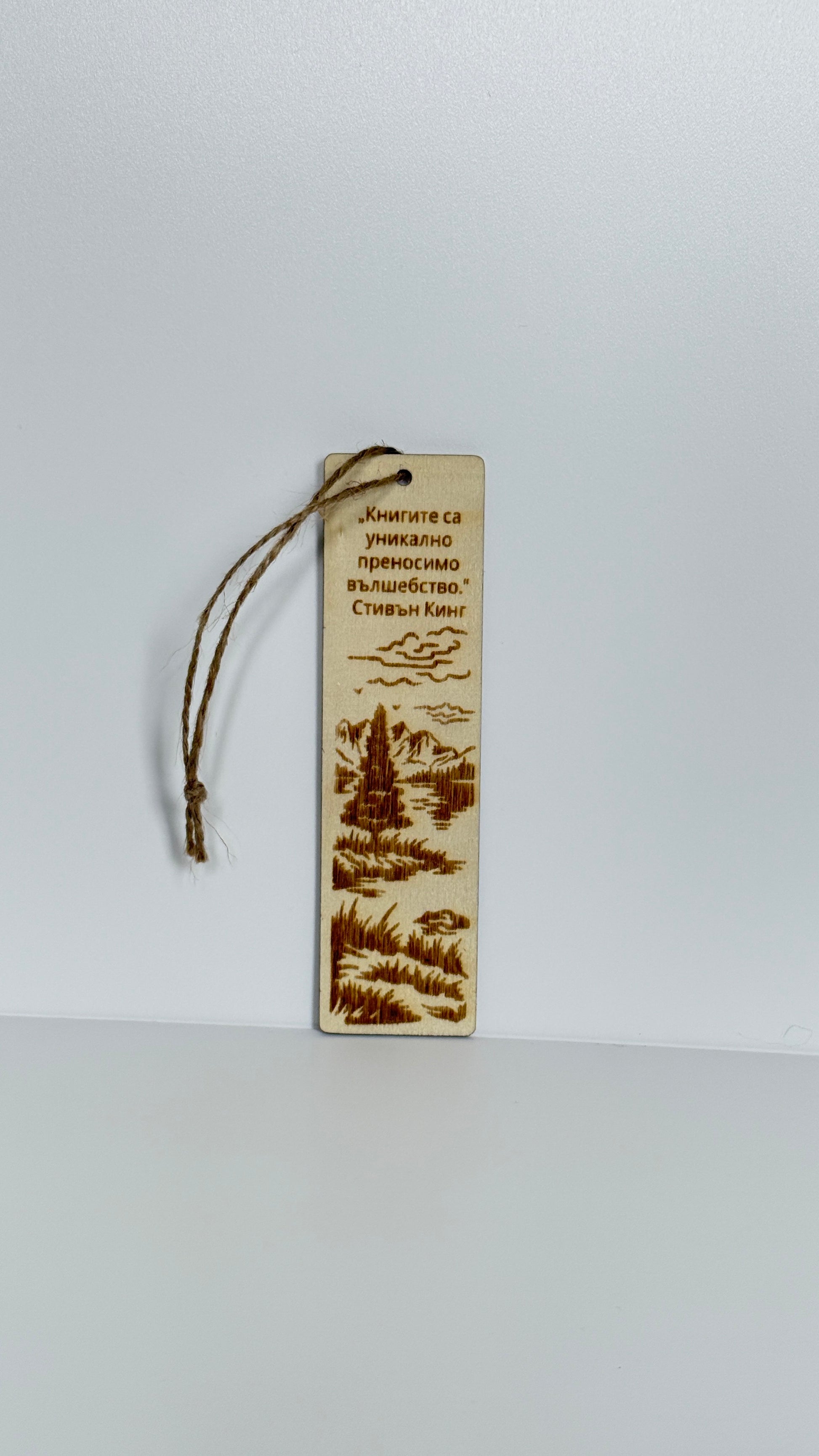 Добавете стил и вдъхновение към всяка книга с този ръчно изработен дървен книгоразделител. Изящно гравиран с цитат по ваш избор и пейзаж от природата в 4 различни варианта, този аксесоар е идеален подарък за любителите на четенето.