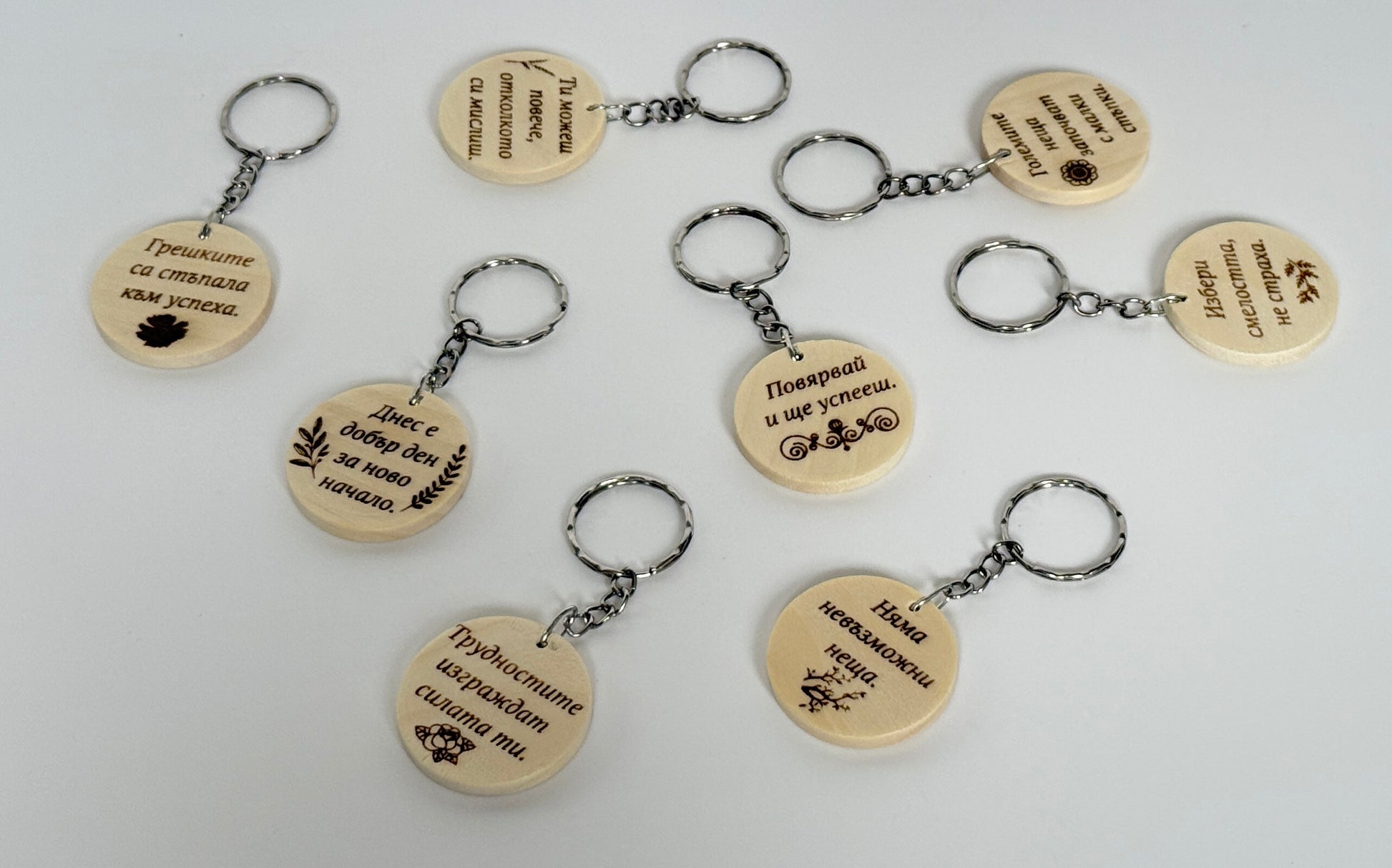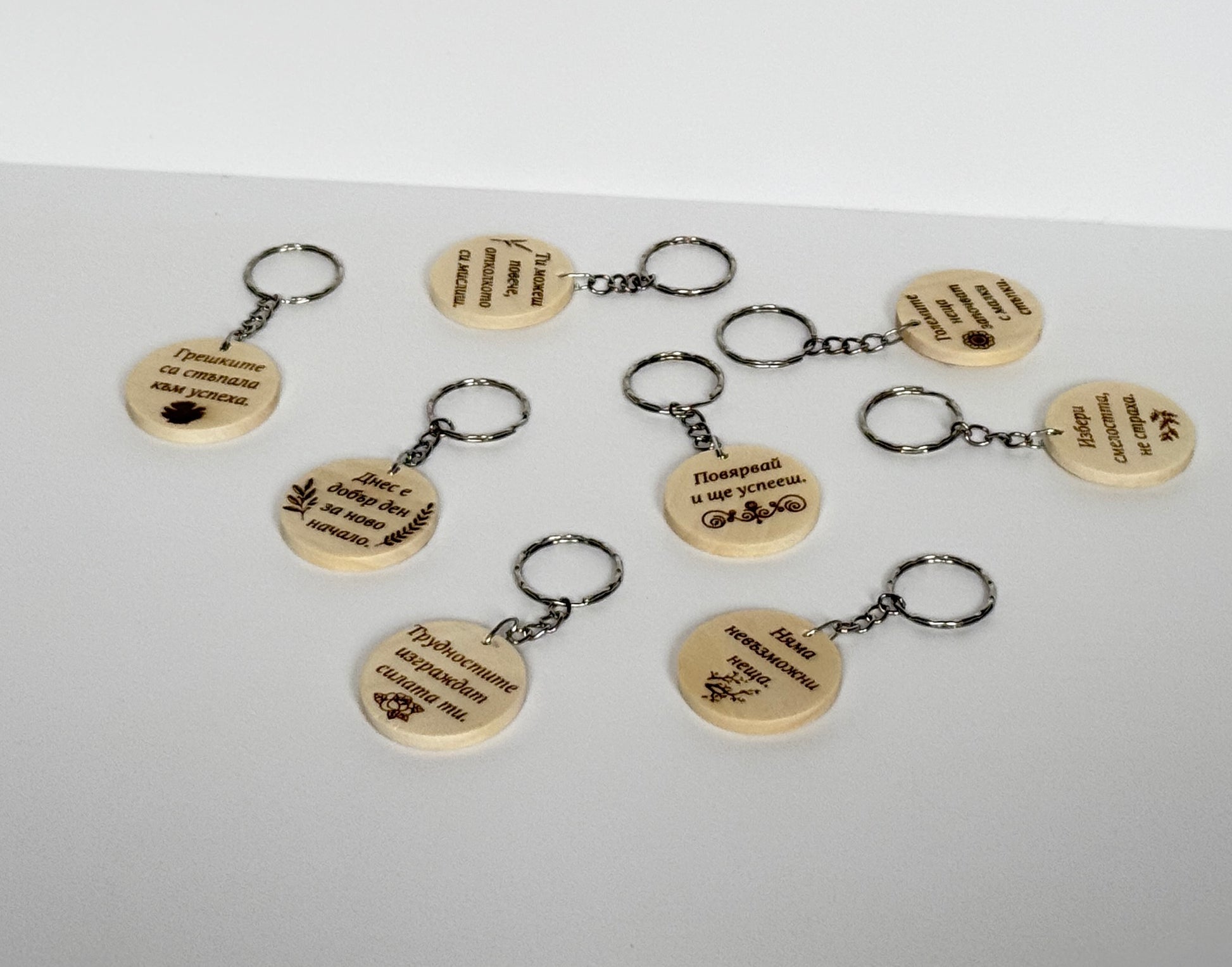 Мотивиращи дървени ключодържатели с послание – За всеки ден с усмивка