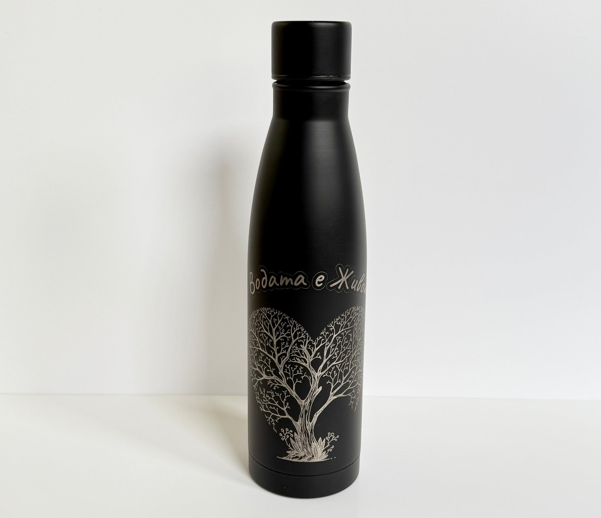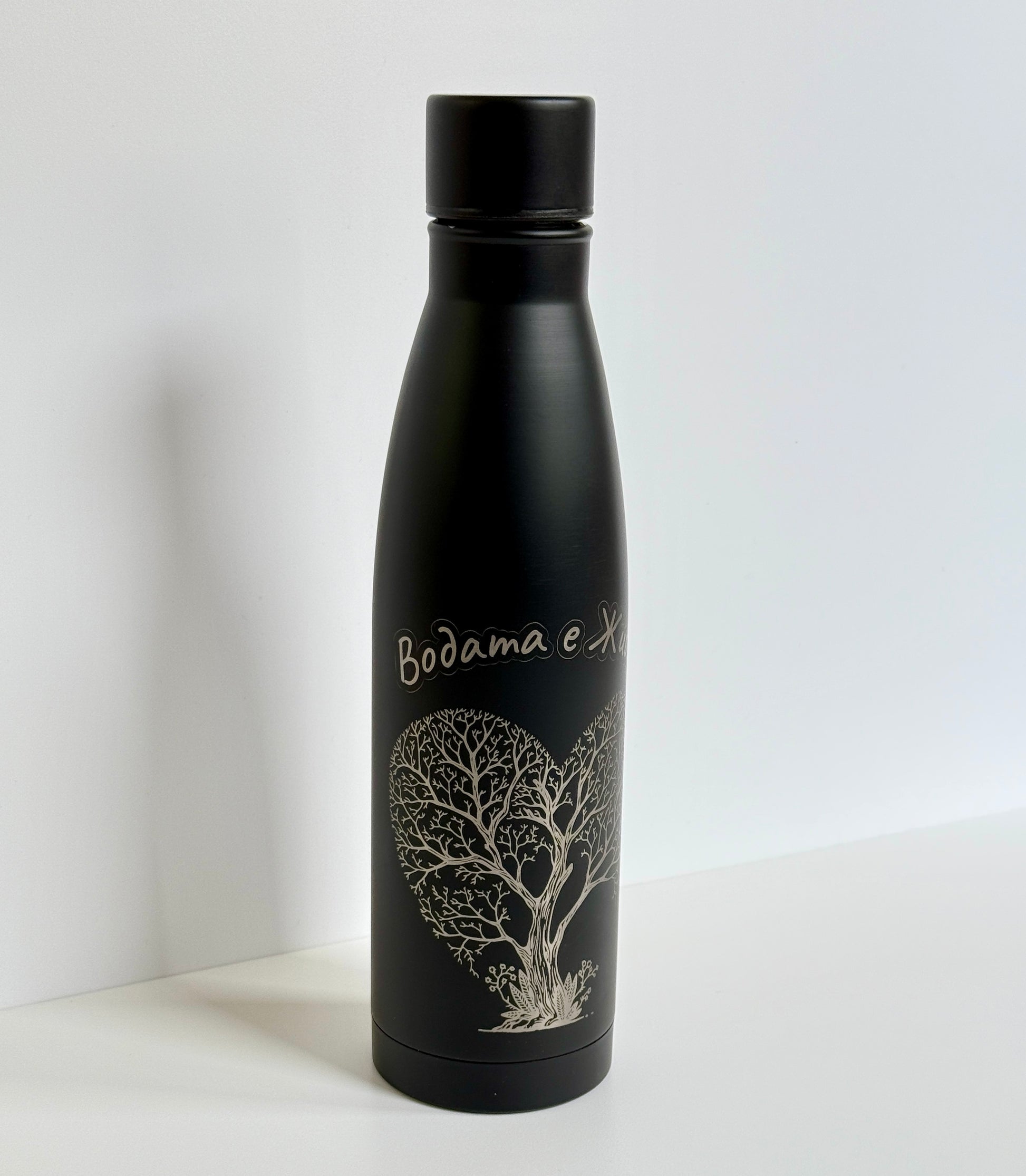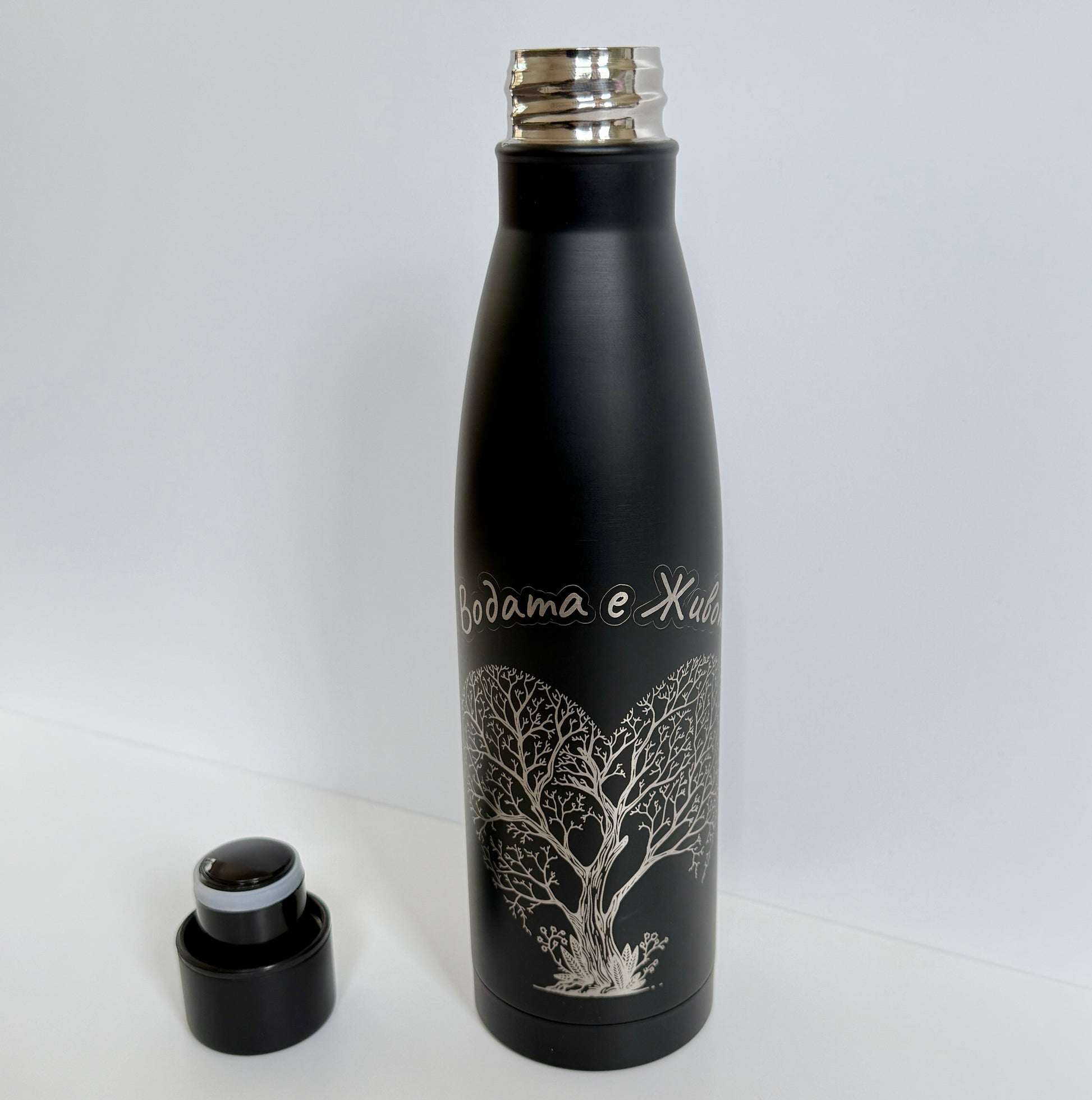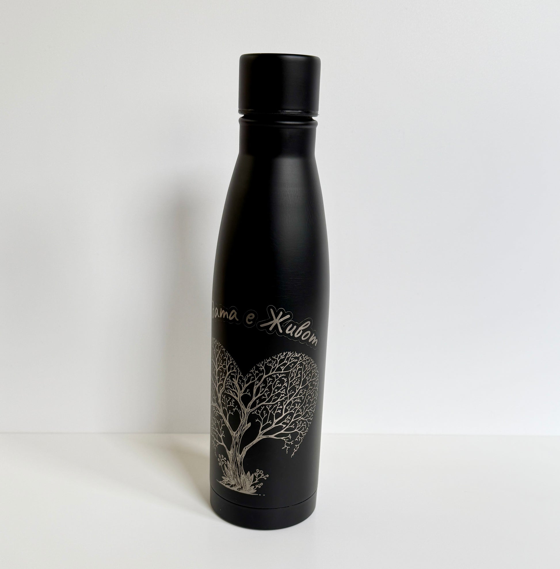 Остани хидратиран със стил! Тази елегантна термо бутилка от неръждаема стомана е не само практична, но и напълно персонализируема. Можеш да я направиш своя с изображение и текст по избор – идеален подарък за теб или любим човек!